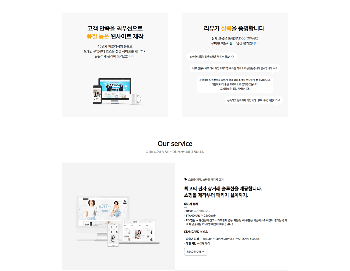 고객의 요구에 맞게 제작된 웹사이트 제공